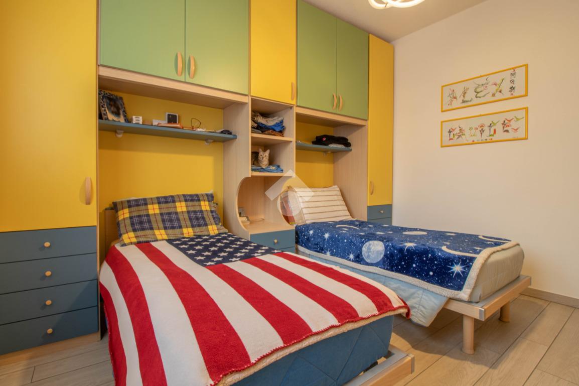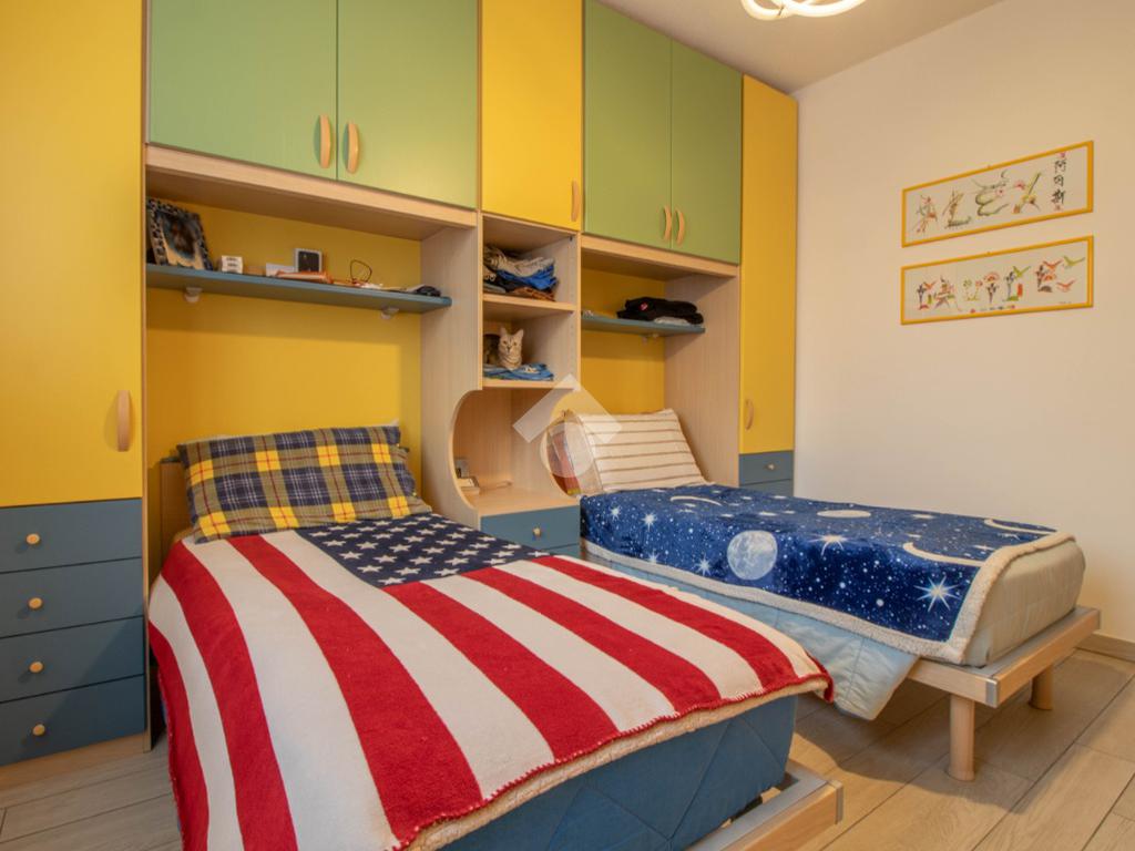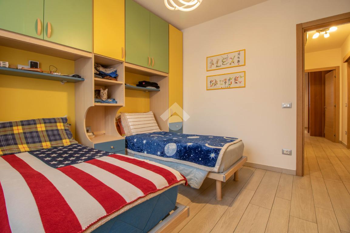 La zona notte offre due camere da letto, disimpegno e due bagni, moderni e funzionali.