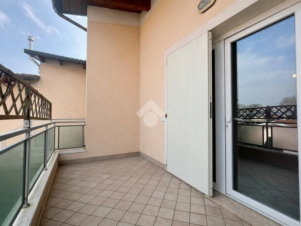 Salendo le scale si raggiunge un balcone abitabile, perfetto per colazioni al sole o cene nelle sere d’estate, che accompagna all’ingresso dell’abitazione.