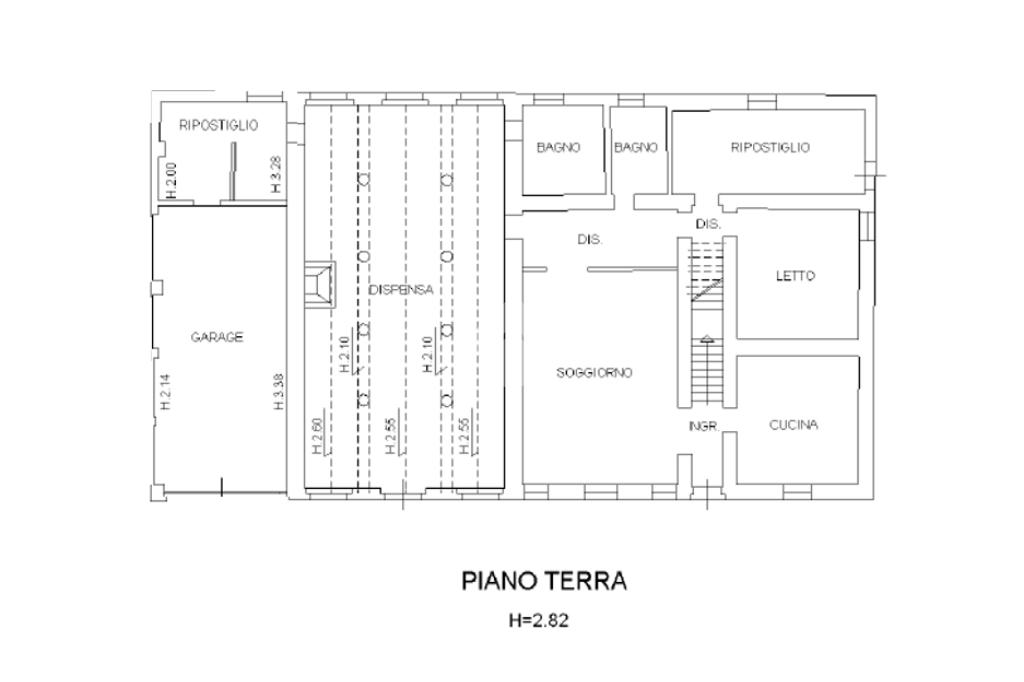 Al piano terra, gli ambienti ampi e funzionali comprendono un soggiorno luminoso, una cucina abitabile, una camera da letto, due bagni, un ripostiglio e un disimpegno.