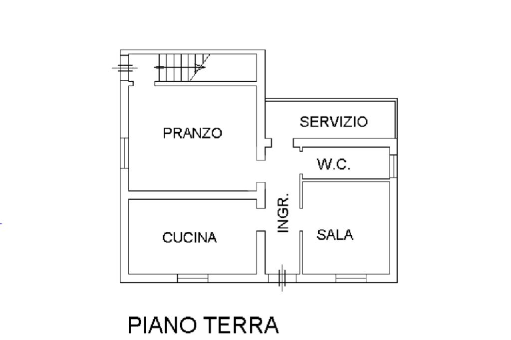 Al piano terra, l’ingresso conduce al corridoio che collega la cucina abitabile, il soggiorno luminoso, una camera da letto e un bagno finestrato, garantendo praticità e armonia negli ambienti di quotidiana fruizione.