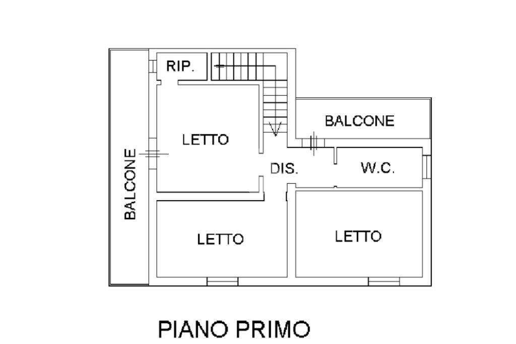 Il primo piano ospita la zona notte, composta da due camere matrimoniali di generose dimensioni, una cameretta e un secondo bagno finestrato.