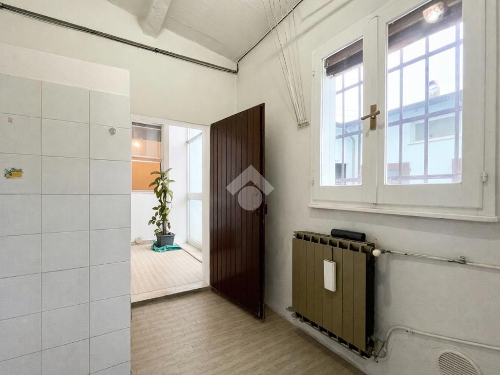 Un disimpegno vetrato luminoso, collega il soggiorno alla lavanderia e conduce direttamente al cortile esterno, spazio ideale per momenti di relax o per attività all’aperto.