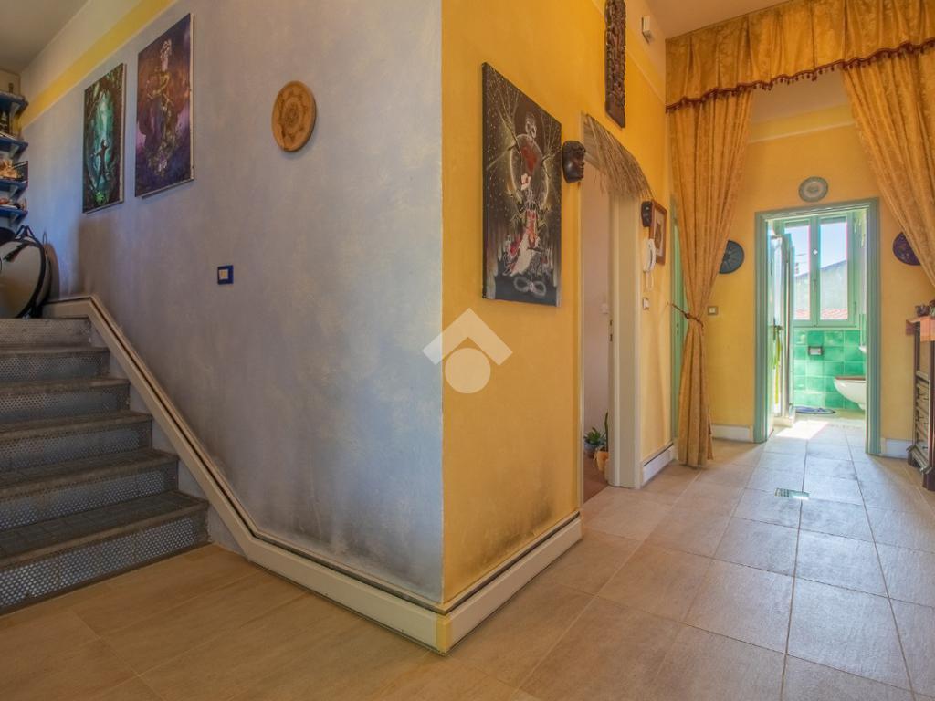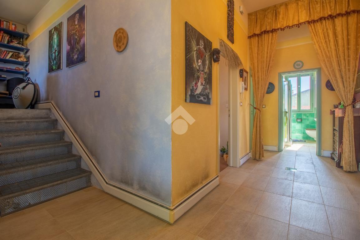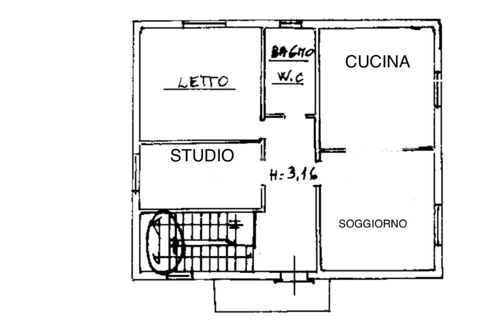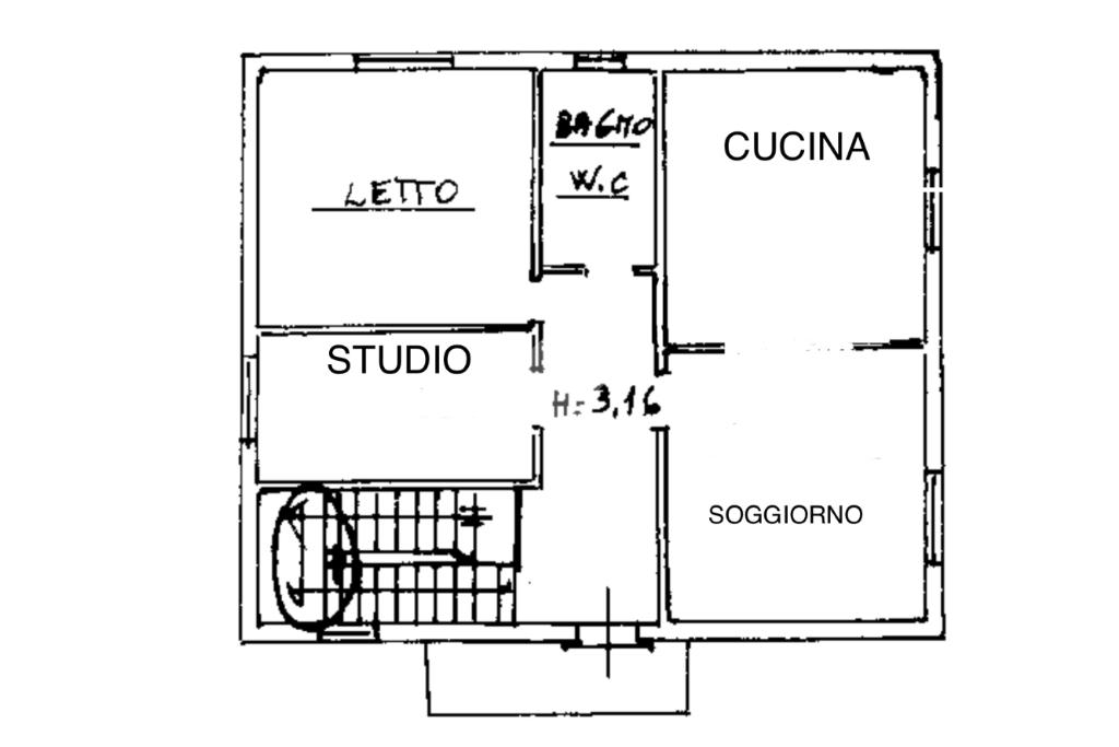 L’accesso avviene attraverso il cortile, salendo le scale si raggiunge il primo piano dove si sviluppa la soluzione.