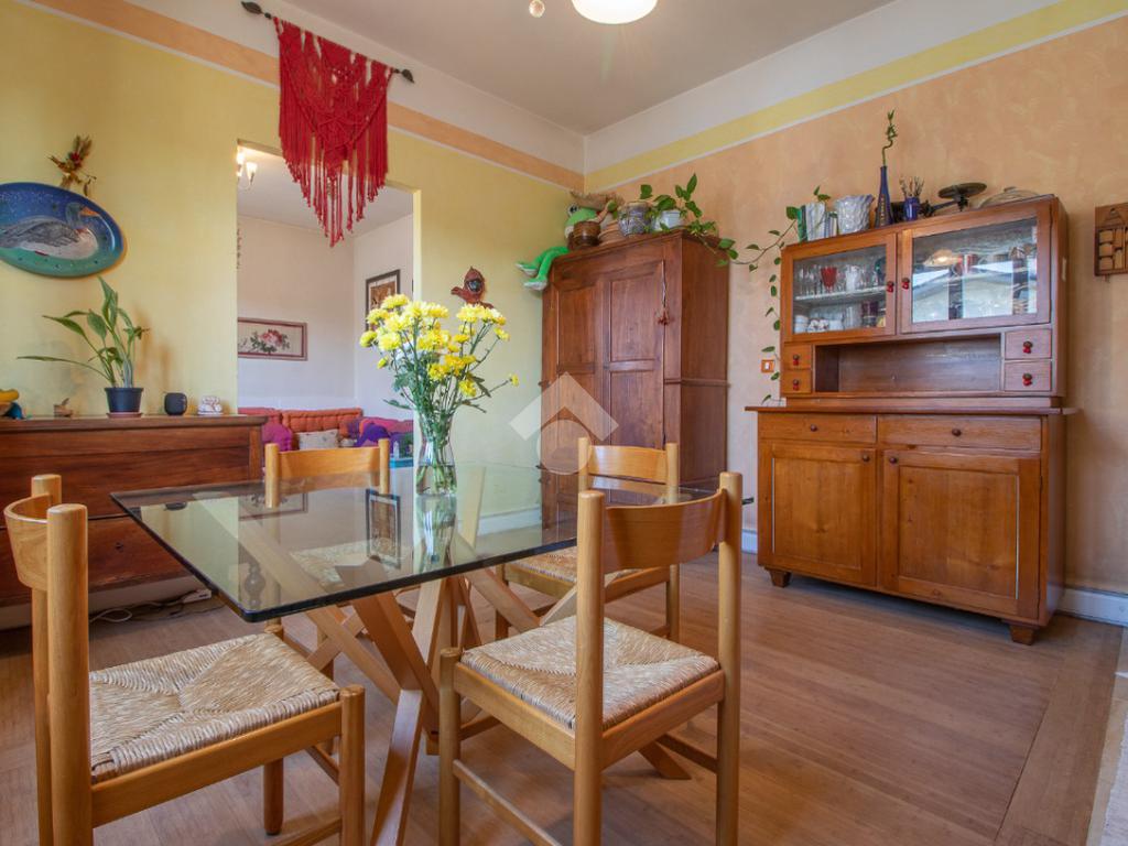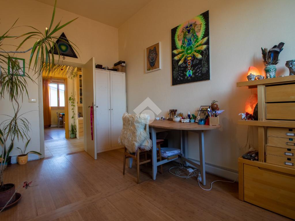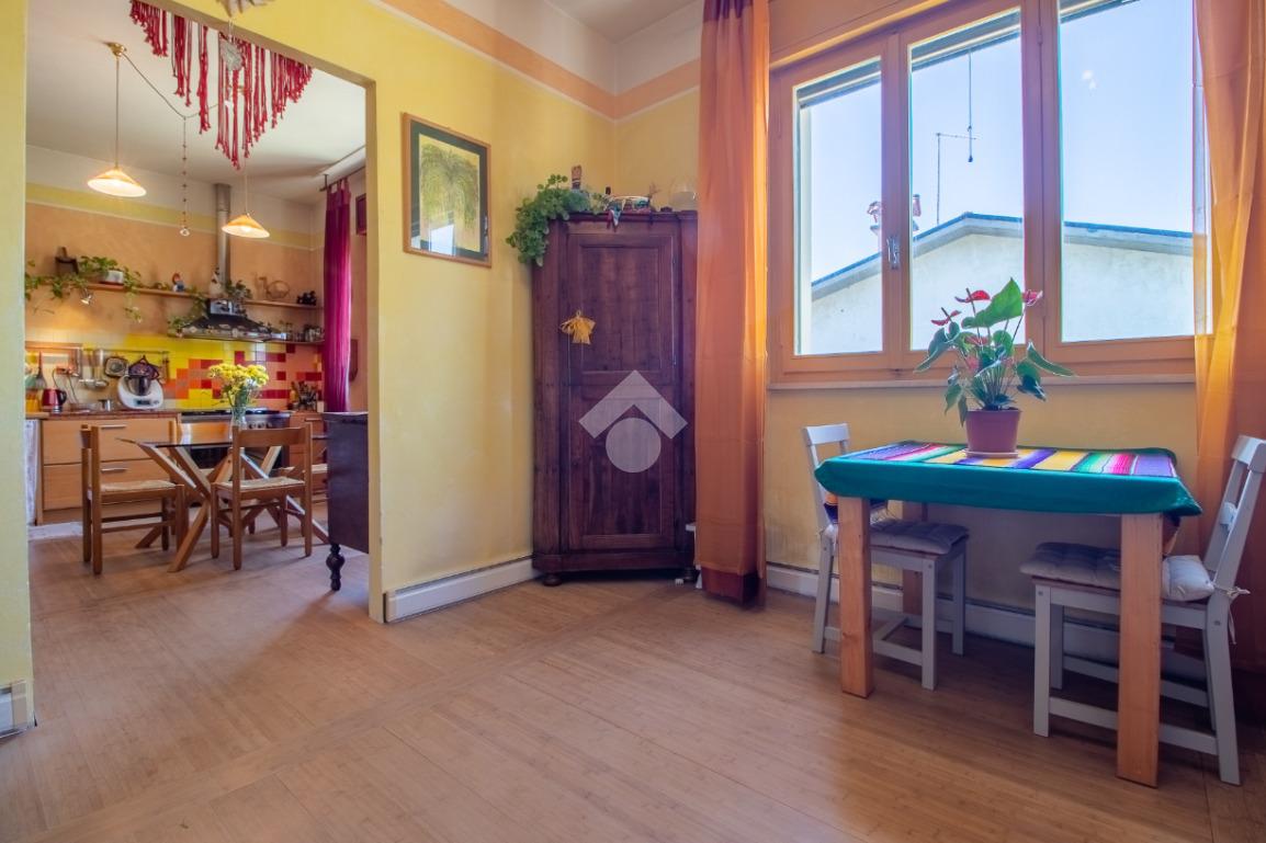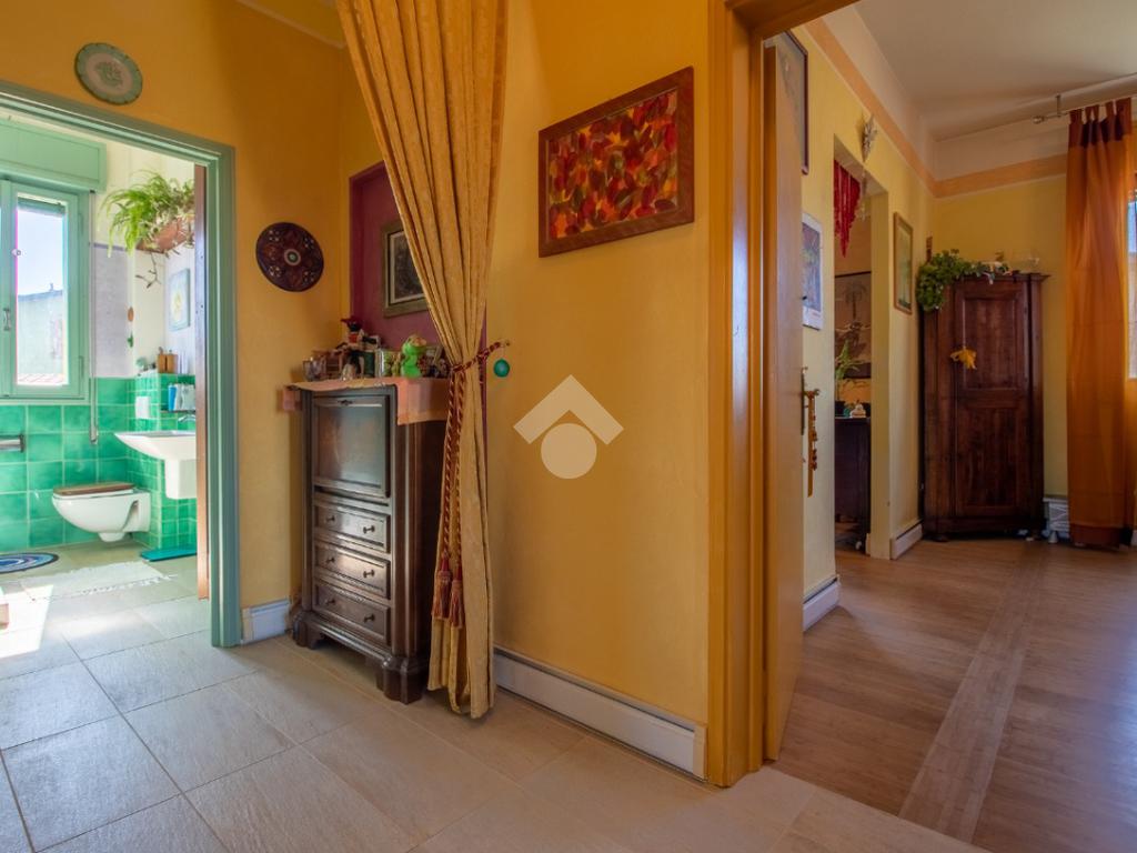 L’accesso avviene attraverso il cortile, salendo le scale si raggiunge il primo piano dove si sviluppa la soluzione.